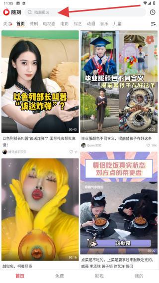 1、进入首页,点击页面顶部标有搜索精选的搜索框,跳转至搜索界面。