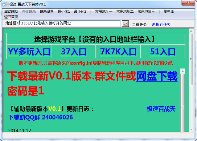 2.从本辅助工具的浏览器中选择对应登陆入口或在地址栏中输入网址,进入游戏。