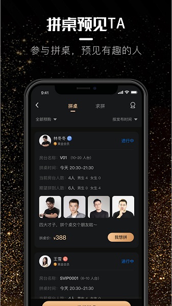 拼单列表查找拼单好友,让你喝酒不再孤单,也可自己发起拼单,结识新的好朋友。