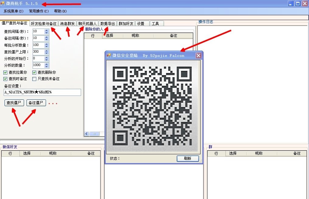 微商枪手修改版是一款功能强大的微商营销辅助工具,是专业的微商营销利器,可以查找微信的僵尸粉等功能,目前功能已经更新了20多种,包括群加好友、信息群发、自动聊天机器人等,软件目前测试完美,模拟微信登陆网页版的无需安卓模拟器。欢迎微商的朋友下载!