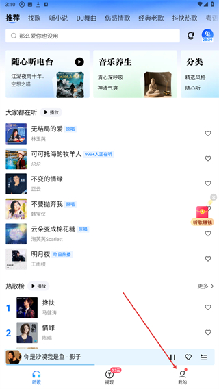 1、打开酷狗APP,在首页底部点击我的按钮。