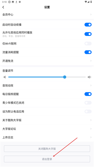 3、在设置页面的底部区域,找到退出登录选项并点击,弹出退出确认的弹窗。