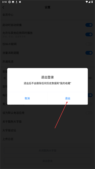 4、在弹出的退出登录确认弹窗中,点击退出按钮,即可完成账号的退出登录操作。