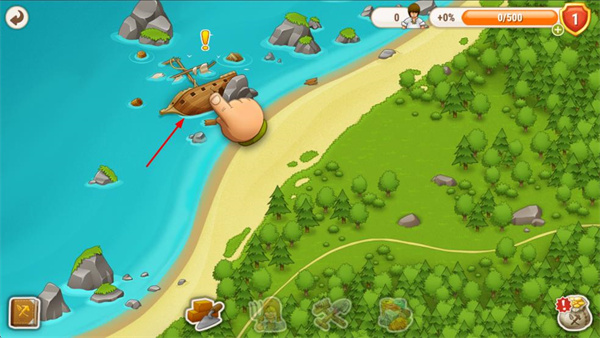 3、进入游戏场景后,点击海边的船只,获取对应的资源或道具。
