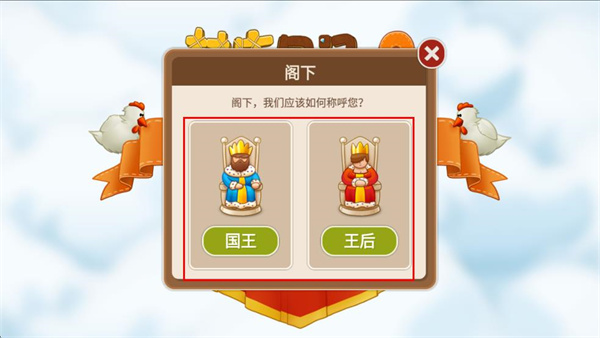 2、在角色选择页面,挑选国王或王后其中一个角色,确定游戏中的身份。