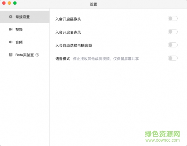 点击该按钮,即可唤出设置窗口,您可以在该窗口进行设备信息检测,查看您的摄像头.麦克风.扬声器是否被识别,同时可进入Beta实验室,体验最新黑科技