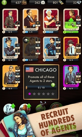 探索主要城市在世界各地,你在纽约,伦敦,东京参与更多的任务。发现并收集数百个特约代理商与独特的个性和技能。发送代理团队的秘密任务。加入一个机构,对商业间谍和朋友们有所帮助!收集与独特的个性和技能超过300。探索世界各地的30个主要城市,包括纽约,伦敦和东京。训练你的代理,使之成为超级间谍。完成任务,打入敌人内部,窃取情报加入一个机构与您的朋友和贸易