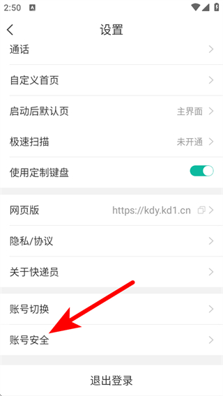 2、在设置的页面,点击账号安全,进入账号安全设置页面。