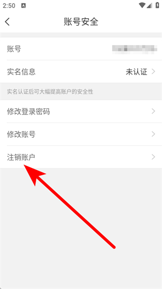 3、在账号安全设置页面,点击注销账户,进入注销账户说明页面。