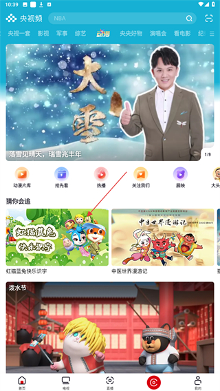 1、打开央视频的APP,进入时点击右上的功能图标。