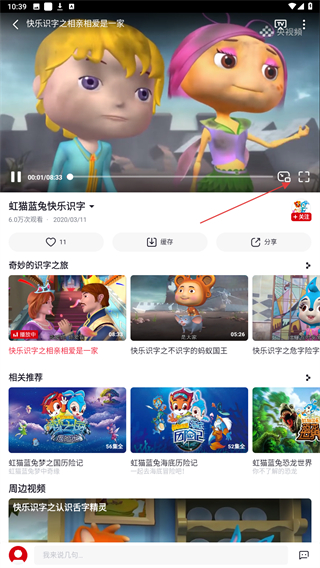 3、进入播放的页面内,用户需点击画面下缓存的功能按钮。