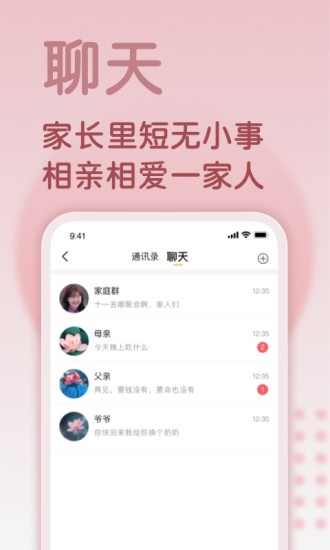 回家儿app是一个以家庭聊天为主的手机软件,主要是方便大家和父母们沟通。出门在外,我们和父母沟通说话的时间少了,往往一年到头说不到几次话。而回家儿可以让大家更好的陪伴父母,关注父母的点滴。