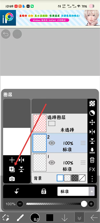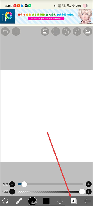 1、打开爱笔思画创作页面,点击页面底部右侧的图层图标,打开图层管理界面。