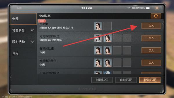 3、在组队界面的全部队伍列表里,浏览其他玩家创建的队伍,找到想加入的队伍后点击其对应的加入申请入队。