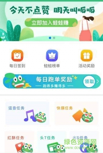 蛙蛙赚最新版本一天能赚多少钱?这里的任务非常多,用户可以自由的领取,并且操作也是十分的简单轻松,每天登录都可以领取不同的任务,喜欢的玩家快到绿色资源网下载体验吧!