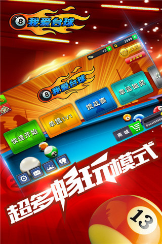 我爱台球是一款休闲益智类手机游戏,与一般台球方式不同的是这款游戏是于全球千万玩家联网对战的,并且流量消耗极少,游戏运行畅快,操作简单,喜爱台球的朋友们赶快下载体验吧!