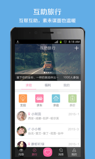 无期途行又是一个旅行者与当地人之间的对接平台。用户可以通过无期途行,联系到对旅游目的地衣食住行游购娱等旅游信息非常了解的当地达人帮你制定旅游线路,带你吃喝玩乐,目标是更加自由、灵活的旅行方式。