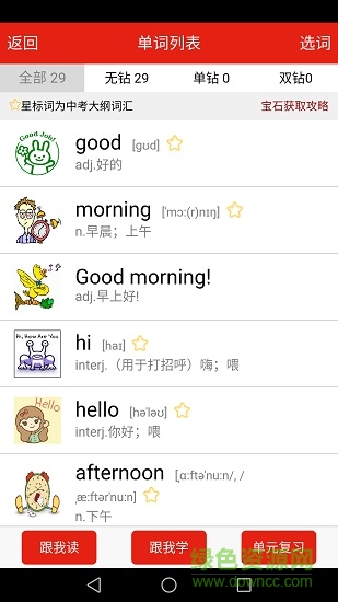 初中英语单词通免费版是一款好用的初中英语学习app,此软件主攻初中单词,与各版本教材同步适配,图文并茂,便于理解记忆,发音纯正标准,喜爱的朋友赶快到绿色资源网下载使用吧!
