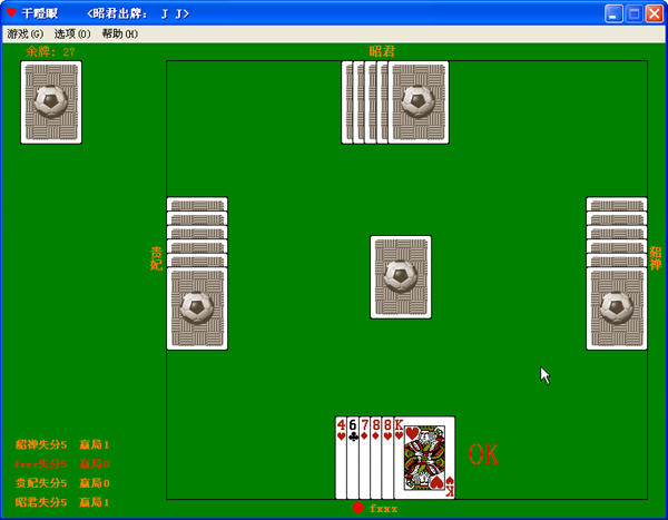 干瞪眼游戏用的一副扑克牌,共54张牌,每桌需要2-6名玩家才能游戏。