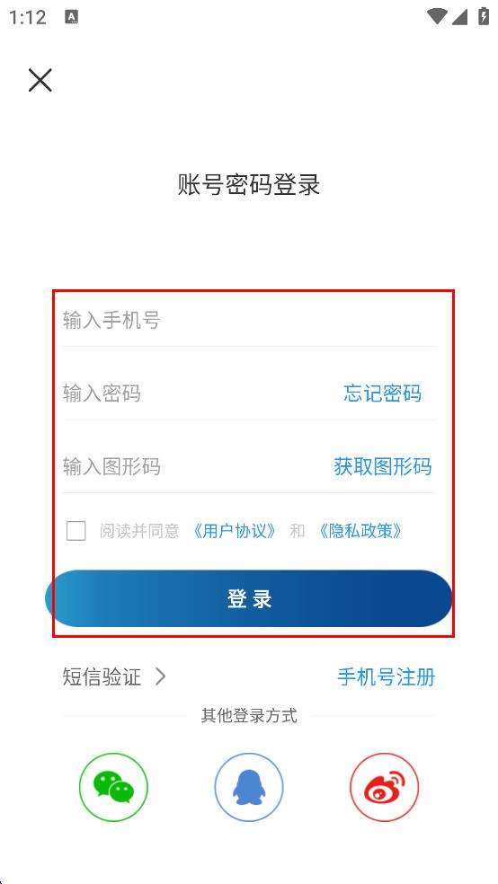 4、在登录界面,输入手机号或QQ号,接着输入密码,勾选已阅读并同意相关协议,最后点击登录按钮。