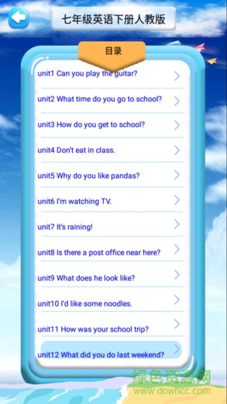 七年级下册英语解读app提供了七年级人教版英语课程知识,为学生们提供了课本点读、英语单词讲解以及课后同步练习学习功能。在手机上高效学习英语课本知识,赶快来绿色资源网下载安装吧。