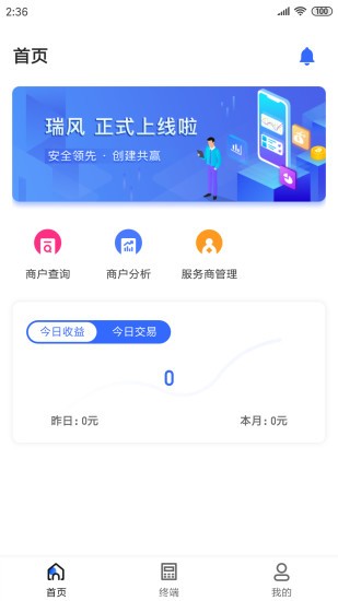 瑞风软件是服务商管理的好帮手,支持在手机上进行商户的查询和分析,可以进行终端激活、绑定的管理,可以查看可调拨以及回拨的数量,还能查看详细的结算信息,收益以及交易趋势一目了然,欢迎感兴趣的朋友下载使用!