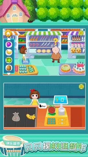 模拟超市购物的休闲益智过关类虚拟经营类单机app,也是一本益智早教、开发幼儿宝宝智力、学前早教的启蒙知识大全,通过和贝贝小公主一起逛街的模式来同时满足小孩子去商店街买菜买水果、化妆换装、在商场当收银员的愿望。