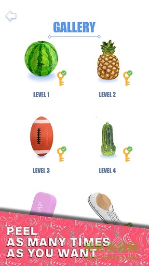 完美果皮安卓手机版是一款非常好玩额模拟削水果游戏,有各种水果等着你来去皮,刀具种类多,享受一刀去皮剥皮的畅快感,是时候展示你的削皮技术了,喜爱的朋友赶快到绿色资源网下载体验吧!