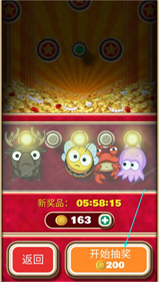 4、在奖励界面消耗金币点击开始抽奖按钮,参与抽奖获取游戏内的奖励道具。