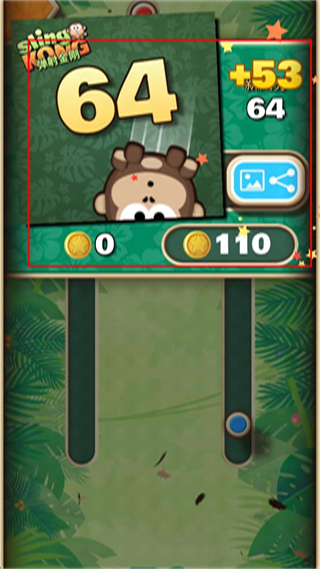 2、操控猴子弹射至上方蓝色按钮,触发机关并收集过程中的金币,积累得分。