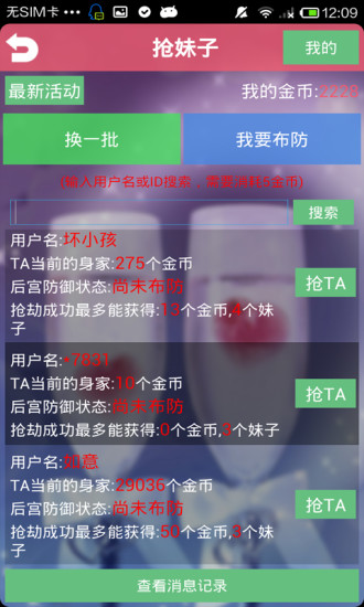 4.新增抢妹子功能,亲们切记要“布防”