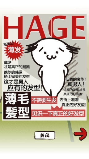 毛发育成是一款养成类的手机游戏。游戏的玩法就是你需要把一位谢顶大叔让他把毛发生长起来。你的主要的目的就是让主角的头发长起来,你可以通过各种手段来为头发增加营养,但是小心长变样了哦!因为不是说你随随便便就可以让头发长起来了,不然就太美什么玩点了。游戏设定了100种头发形态以及10种不同的结局,所以最后长成什么样,还是要看各位玩家的技术了。