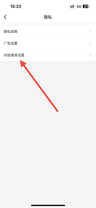 3、在隐私界面,点击内容推荐设置选项,进入对应的权限管理页面。