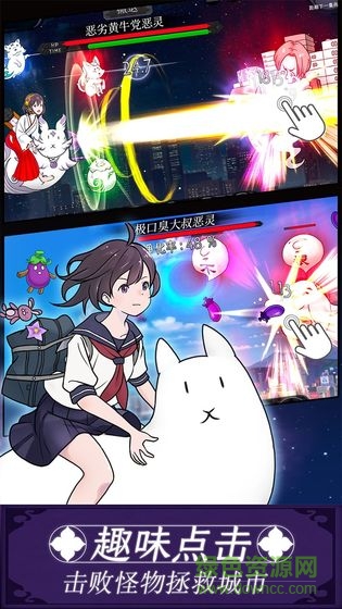 这是一款简单轻松的点击游戏,面对不断出现的敌人投掷茄子,净化敌人吧!当关卡的净化值达到100%的时候BOSS就会出现!你需要在有限时间内打败boss ,打败敌人后可以获得灵验石,可以强化茄子! 换装系统 使用道具抽取礼物箱,可以获得各式服装 为女主人公换上可爱的衣服,积极打倒敌人吧!