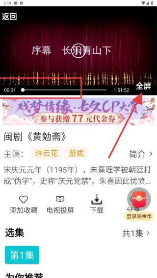 2、页面会展示闽剧推荐视频,以及分类剧目卡片,点击即可跳转至播放页面。