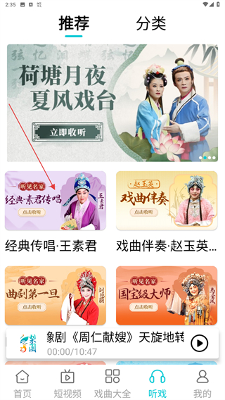 2、进入推荐的页面内,选择并点击要播放的戏曲封面。