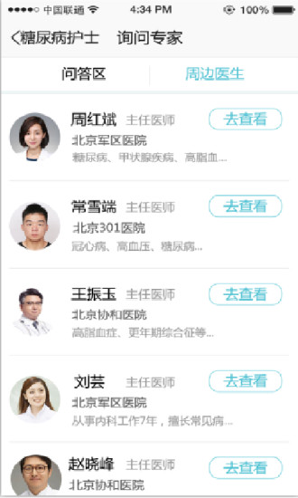糖尿病护士是由启名方科技(北京)有限公司研发的糖尿病患者专属的糖尿病管理应用。本应用与医院进行合作,拥有糖尿病专家团队来为患者服务。使用本应用的糖尿病患者可以直接跟糖尿病专家医生进行一对一的咨询交流,患者与专家医生进行绑定之后,专家医生可根据患者记录的血糖数据为患者的血糖控制情况进行评估,同时对患者进行病情防治辅导。