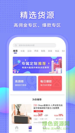 优质精选货源:海量优质精选商品,高佣金专区、爆款专区、为你推荐专区