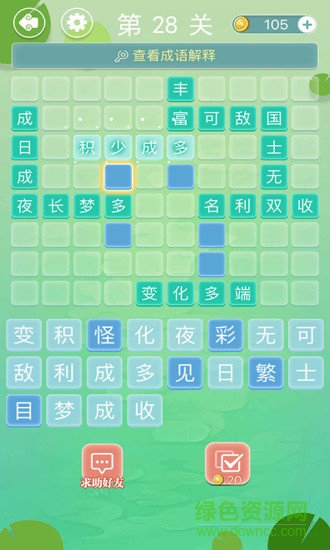 2、海量关卡设定,体验一场非常好玩的脑力猜成语闯关游戏,考验你的词汇量;