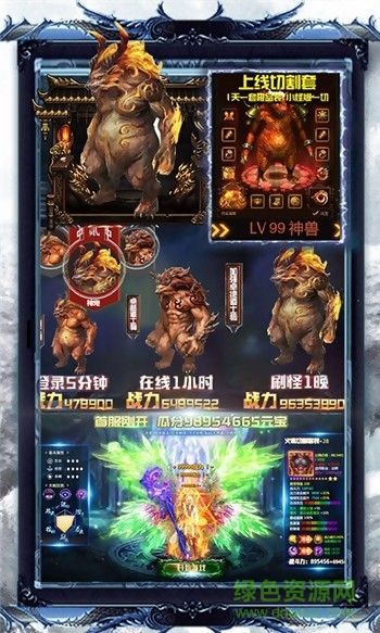 变态切割版手游玩法可以说是相当的刺激了!这款游戏在还原经典版传奇手游玩法的基础上为玩家们带来了更为精彩的战斗模式。超高爆率武器装备任你体验!还等什么?马上来绿色资源网下载挑战吧。