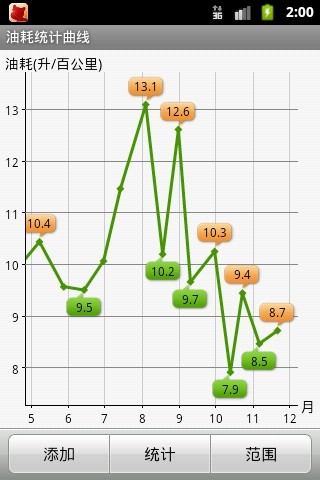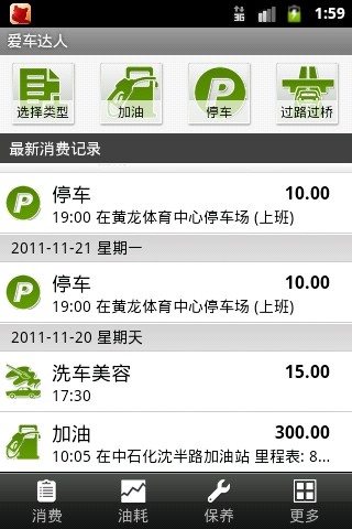 爱车达人是一款简单易用的汽车油耗统计、消费管理工具,可以让您轻松计算油耗,管理汽车相关的费用支出。爱车达人主要功能有:记录加油明细;自动计算各个加油区间的油耗,画出趋势图;计算平均油耗,支持分享到新浪微博;全面记录汽车相关的费用支出;提供任意时间段内各种费用的汇总统计,画出柱状图或饼状图;支持多辆汽车管理。