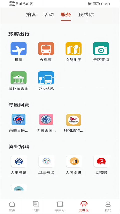 草原云客户端内蒙古日报社以传播党的声音为根本、以提升区域用户服务为目标,充分利用人民日报社的技术优势,建设成一个服务于内蒙古地域人的,具有权威性、本土化和有深度的综合新闻客户端平台。