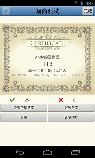 2.本测试采用国际标准智商测试题,测试结果准确、权威。