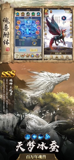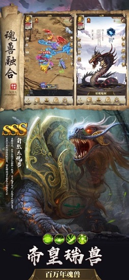 3、游戏的福利极其给力,首次上线的玩家就可以收到系统直接赠送的SSS级珍贵魂兽助你成长。