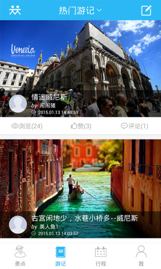 1.游记攻略:实时发布精彩游记,同样也可以欣赏别人的精彩旅程