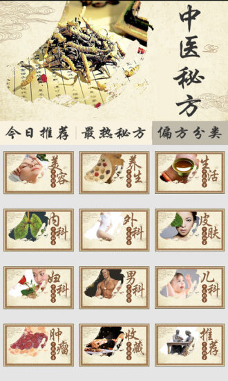 中医秘方偏方是一款很实用的中医药物软件,生活中我们的身体上常常会出现各种小毛病,不断地打乱和影响你正常的生活秩序。中医秘方偏方就是专为用户精心研发的一款家庭生活医药应用,让您足不出户就可以快速治好那些经常出现的各种小病症,非常省心好用!欢迎下载。