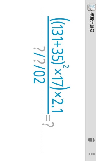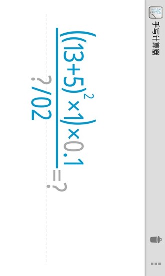 手写计算器是一款常用工具类软件,用户只需要用手指在屏幕上轻轻一划,将想要计算的算式写上去,软件会自动计算给出结果,解决了一般计算器中有些符号难找的问题,是一款运算的神器,喜爱的朋友赶快下载体验吧!