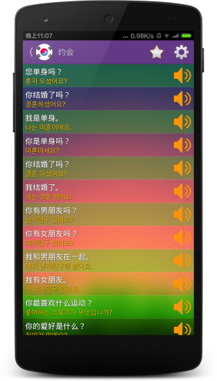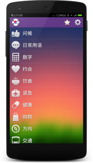 学韩语,收录了超过1500句常用的韩语短语和词汇,这是一个非常有用的语言工具,尤其是当你到韩国旅游、到韩国出差或在韩国遇上紧急情况的时候等。每句用语均配有韩国当地资深录音员录制的发音,我们尽全力的保障地道、易懂的发音。您可以在任何地方,任何时间,练习您的阅读和聆听能力,您将会发现学习韩语原来是如此简单容易。