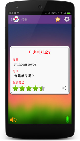 学韩语是一款韩语学习软件,包含丰富的韩语短语和词汇内容,软件采用地道标准的韩国发音,带领你轻松地学习韩语。本软件不需要联系网络就可以随时随地学习韩语,是您自学韩语的好帮手,赶快下载和小编一起学习韩语吧!