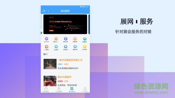 展网安卓版是一款非常便捷的展会办公服务app,支持进行客户对接,可以收藏自己感兴趣的展会活动,也可以筹办和处理展会的相关事宜,如果你也需要的话,那就赶快到绿色资源网下载使用吧!